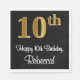 Ce design sophistiqué, luxueux et élégant de serviette en papier sur le thème de l'anniversaire comporte un grand numéro ordinal "10ème" avec une imitation/faux look d'inspiration or, ainsi que le message de voeux d'anniversaire "Happy 10ème anniversaire", et un nom personnalisé dans une police de style script. L'arrière - plan est noir de couleur. Des serviettes en papier comme celle-ci peuvent être utilisées pour célébrer le 10e anniversaire de quelqu’un. [~Z0000516]