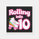 Ce design de fête de patinage est parfait pour une fête de patinage à rouleaux ou un thème d'anniversaire pour une fille de 10 ans. Si la fille d'anniversaire aime le roller skate, elle ADORE ce skate party design! Caractéristiques style rétro 'Rolling in 10' anniversaire citation avec roller cool graphique avec arc-en-ciel & étoiles qui est amusant et unique. Fun roller skate design pour le 10e anniversaire d'une fille!