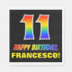 Cette conception amusante, colorée et joyeuse de serviette d'anniversaire comporte un grand nombre de "11" et le message "HAPPY BANTHDAY", tous deux colorés avec un motif inspiré par un gradient de spectre arc-en-ciel, ainsi qu'un nom de destinataire personnalisé jaune gras. L'arrière - plan est noir de couleur. Des serviettes en papier personnalisables et amusantes comme celle-ci pourraient être utilisées lors d’une célébration pour célébrer le 11e anniversaire de quelqu’un. [~Z0000476]