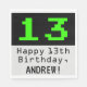 Ce design amusant et geek sur le thème de l'anniversaire de papier serviette dispose d'un grand modèle rétro de jeux d'ordinateur numéro "13" sur un arrière - plan de couleur noire. Il comporte également le message de voeux d'anniversaire "Joyeux 13e anniversaire", et un nom personnalisable. Des serviettes en papier sur le thème de l'anniversaire comme celle-ci pourraient être amusantes à utiliser lors d'une célébration organisée pour honorer quelqu'un qui célèbre son 13e anniversaire. [~Z0000404]