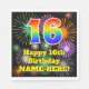 Cette conception amusante et excitante de serviette en papier d'anniversaire comprend un grand nombre de "16" avec un dégradé coloré du spectre arc-en-ciel inspiré motif, avec le message "Joyeux 16e anniversaire", et un nom personnalisé. L'arrière - plan présente un motif coloré, inspiré par des feux d'artifice, qui éclate en couleurs. Des serviettes en papier vibrantes comme celle-ci pourraient être utilisées pour organiser une fête d'anniversaire pour quelqu'un en l'honneur de son 16e anniversaire. [~Z0000574]