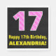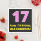 Cette conception amusante et joyeuse de serviette en papier sur le thème de l'anniversaire comporte un grand nombre "17" avec un motif rayé contenant des formes cardiaques coloré rose clair et rose foncé. Il comporte également le message de voeux d'anniversaire "Joyeux 17e anniversaire", et un nom personnalisé. Des serviettes en papier comme celle-ci peuvent être amusantes à utiliser lors d’une fête organisée pour célébrer le dix-septième anniversaire de quelqu’un. [~Z0000436]