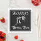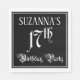 This opulent and ornate birthday themed paper napkin design features a personalized name and the message “17th Birthday Party”. The large number “17th” and the words “Birthday Party” are in elegant script-style text, and the background is colored black by default (although it can be customized). Ornate, luxurious paper napkins like this might be used at a birthday party being held in celebration of somebody’s seventeenth birthday. [~Z0000563]