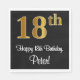 Cette conception élégante, sophistiquée et élégante de serviette en papier d'anniversaire comporte un grand numéro ordinal "18th" avec un motif dégradé d'inspiration fausse/imitation or, ainsi que le message de bienvenue d'anniversaire "Happy 18th Birthday," et un nom personnalisé dans une police de style script. Il dispose également d'une arrière - plan de couleur noire. Des serviettes en papier sur le thème de l’anniversaire comme celle-ci pourraient être une façon amusante de célébrer le dix-huitième anniversaire de quelqu’un. [~Z0000516]