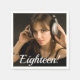 Modèle pour votre propre photo. Texte blanc superposition : Dix-huit !. Écrit avec un script de style moderne écrit à la main. Une serviette pour une fête du 18ème anniversaire.