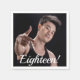 Modèle pour votre propre photo. Superposition de texte blanc : Dix-huit ! écrit avec un script de style à la main moderne. Une serviette pour une fête du 18e anniversaire pour les garçons, les gars.