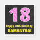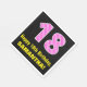 Cette conception amusante et joyeuse de serviette en papier sur le thème de l'anniversaire comporte un grand numéro "18" avec un motif rayé rose clair et rose foncé contenant des formes cardiaques. Il comporte également le message de voeux d'anniversaire "Joyeux 18e anniversaire", et un nom personnalisé. Des serviettes en papier comme celle-ci peuvent être amusantes à utiliser lors de la célébration du 18e anniversaire de quelqu’un. Cela pourrait aussi être un choix amusant pour quelqu'un dont l'anniversaire tombe le jour de la Saint-Valentin (14 février), en raison de ses symboles et couleurs de coeur affectueux. [~Z0000436]
