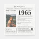 Souhaitez un joyeux anniversaire à quelqu'un né en 1965 avec ces serviettes en papier uniques de style journal, comprenant une collection de faits amusants et d'actualités mondiales de l'année de leur naissance. Soyez créatif et créez un souvenir personnalisé ! Conçues pour ressembler à un journal vintage avec du texte noir et blanc, elles sont facilement personnalisables avec une photo de l'invité d'honneur et son nom. Célébrez les années 60 dans un style unique.