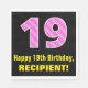 Ce design joyeux et amusant de serviette en papier à thème d'anniversaire comprend un grand nombre de "19" ayant un motif rayé rose clair et rose foncé contenant des formes cardiaques. Il comporte également le message de voeux d'anniversaire "Joyeux 19e anniversaire", et un nom personnalisable. Des serviettes en papier comme celle-ci peuvent être amusantes à utiliser à la fête du dix-neuvième anniversaire de quelqu’un. Cela pourrait aussi être un choix amusant pour quelqu'un dont l'anniversaire tombe le 14 février (Saint-Valentin), en raison de ses symboles et couleurs de coeur aimés. [~Z0000436]