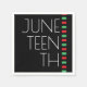 Les serviettes en papier du 10e jour férié. Ces serviettes ont un arrière - plan noir, une bande rouge, noire et verte, et les lettres sont en blanc. Junetdix Rouge Black Green Celebration Napkins Conception des jours fériés | ©Melissa Patton - Designer