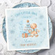 Les serviettes en papier de Noël 1er anniversaire pour un bébé garçon portaient un adorable homme en pain d'épice, un arbre de Noël, un cadeau et des flocons de neige, le tout en bleu et beige bébé. Personnaliser facilement le texte - Kate Eden Art