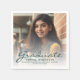 Serviettes modernes de fête de graduation avec une photo personnalisée avec superposition de texte. Remplacez facilement l'exemple d'image par une photo de votre diplômé. Le mot "Graduate" apparaît dans le script d'écriture vert foncé, avec le nom, l'école, et l'année de graduation ci-dessous dans la police sans serif. Une superposition de dégradé blanc permet de faire apparaître le texte vert. Idéal pour obtenir un diplôme d'études secondaires ou collégiales.