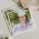 Serviettes modernes de fête de graduation avec une photo personnalisée avec superposition de texte. Remplacez facilement l'exemple d'image par une photo de votre diplômé. Le mot "Graduate" apparaît dans un script d'écriture manuscrite violet, avec le nom, l'école et l'année de graduation ci-dessous dans la police sans serif. Une superposition de dégradé blanc permet de faire apparaître le texte violet. Idéal pour obtenir un diplôme d'études secondaires ou collégiales.
