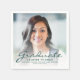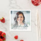 Serviettes modernes de fête de graduation avec une photo personnalisée avec superposition de texte. Remplacez facilement l'exemple d'image par une photo de votre diplômé. Le mot "Graduate" apparaît dans le script d'écriture vert foncé, avec le nom, l'école, et l'année de graduation ci-dessous dans la police sans serif. Une superposition de dégradé blanc permet de faire apparaître le texte vert. Idéal pour obtenir un diplôme d'études secondaires ou collégiales.