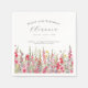 Décor de table parfait pour un anniversaire d'août. Le gladiolus rose est la fleur de naissance pour ce mois-là. Il forme une jolie bordure de fond d'aquarelle sur cette serviette florale personnalisée. Le nom, l'âge et la date de naissance de l'invité d'honneur sont placés au-dessus de celui-ci à l'aide d'élégantes calligraphies et typographies. Tout le texte est modifiable.