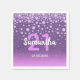Une serviette élégante et glamour pour 21e anniversaire. Fille violet faux parties scintillant et dégradé rose avec un faux sprinkle de diamant rose. Modèles pour un nom, 21 ans et une date. Date de naissance ou date de la fête/anniversaire. Lettres blanches et roses. Le nom est écrit avec un script de style écrit à la main.