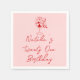 Comme vous voyez cette serviette de brunch d'anniversaire unique et élégant a un modèle bien conçu. Avec la fille de cocktail dessinée à la main rouge avec bouteille de vin et nom manuscrit fantaisiste. Tout sur arrière - plan rose. Vous pouvez facilement customiser en cliquant sur le bouton de personnalisation.