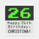Ce design de serviette en papier à thème d'anniversaire nerdy et amusant comprend un grand jeu rétro vert "26" sur un arrière - plan de couleur noire. Il comporte également le message de voeux d'anniversaire "Joyeux 26e anniversaire", et un nom qui peut être customisé. Des serviettes en papier amusantes comme celle-ci pourraient être utilisées lors d'une fête organisée pour célébrer le 26e anniversaire d'un ingénieur, d'un historien de l'informatique ou d'une personne qui apprécie les jeux vidéo vintages. [~Z0000404]