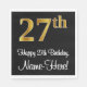 Ce design luxueux, élégant et sophistiqué de serviette d'anniversaire comporte un grand numéro ordinal "27th" avec un look faux/imitation or, avec le message de voeux d'anniversaire "Happy 27th Birthday," et un nom modifiable dans une police de style script. Il dispose également d'une arrière - plan de couleur noire. Des serviettes en papier sur le thème de l’anniversaire comme celle-ci pourraient être une façon amusante de célébrer le vingt-septième anniversaire de quelqu’un. [~Z0000516]