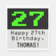 Ce design amusant et geek sur le thème de l'anniversaire papier napkin dispose d'un grand classique vert jeu d'ordinateur modèle numéro "27" sur un arrière - plan de couleur noire. Il comporte également le message de voeux d'anniversaire "Joyeux 27e anniversaire", et un nom personnalisé. Des serviettes en papier comme celle-ci pourraient être utilisées lors d'une fête organisée pour célébrer le vingt-septième anniversaire d'un historien de l'informatique, d'un ingénieur ou d'une personne qui aime les jeux informatiques vintages. [~Z0000404]