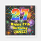 Cette conception joyeuse et passionnante de serviette en papier sur le thème de l'anniversaire comporte un grand nombre de "27" avec un dégradé coloré du spectre arc-en-ciel inspiré motif, avec le message "Happy 27th Birthday,", et un nom personnalisé. L'arrière - plan est décoré d'un motif vibrant et coloré, inspiré par l'apparition de feux d'artifice festifs éclatants. Des serviettes en papier comme celle-ci peuvent être utilisées pour célébrer le vingt-septième anniversaire de quelqu’un. [~Z0000574]