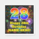 Ce modèle de serviette en papier à thème d'anniversaire joyeuse et joyeuse comporte un grand nombre de "28" ayant un motif coloré du spectre arc-en-ciel inspiré. Il comporte également le message "Joyeux 28ème anniversaire", et un nom personnalisé. L'arrière - plan est décoré d'un motif vibrant et coloré, inspiré par l'apparition de feux d'artifice festifs éclatants. Des serviettes en papier comme celle-ci peuvent être utilisées lors d’une fête d’anniversaire organisée pour célébrer le vingt-huitième anniversaire de quelqu’un. [~Z0000574]
