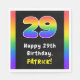 Cette serviette en papier à thème d'anniversaire attrayante et joyeuse comporte le numéro "29" avec un motif multicolore inspiré du spectre arc-en-ciel, ainsi que le message "Joyeux 29e anniversaire", et un nom de destinataire personnalisé. Des serviettes en papier sur le thème de l’anniversaire comme celle-ci pourraient être une façon amusante de célébrer le 29e anniversaire de quelqu’un. [~Z0000629]