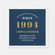 Un design personnalisé de serviette en papier classique pour cette célébration d'anniversaire pour une personne spéciale née en 1994 et ayant 30 ans. Ajoutez le nom à ce design vintage rétro bleu, blanc et or pour un cadeau d'anniversaire 30e personnalisé. Modifiez facilement le nom et l'année avec le modèle fourni. Un merveilleux cadeau d'anniversaire personnalisé. Plus de cadeaux et de fournitures de fête pour cette célébration du 30e anniversaire disponibles dans la boutique.
