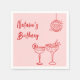 Comme vous voyez cette serviette d'anniversaire unique et élégante a un modèle bien conçu. Avec des martinis rouges dessinés à la main et des verres à cocktails et une boule disco avec un nom manuscrit fantaisiste. Tout sur arrière - plan rose. Vous pouvez facilement customiser en cliquant sur le bouton de personnalisation.