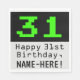 Ce design de serviette en papier à thème d'anniversaire geek et amusant comporte un grand jeu vidéo rétro vert numéro "31" sur un arrière - plan de couleur noire. Il comporte également le message de voeux d'anniversaire "Joyeux 31e anniversaire", et un nom qui peut être personnalisé. Des serviettes en papier comme celles-ci peuvent être utiles lors d'une fête organisée pour célébrer le trente et unième anniversaire d'un administrateur de système informatique, d'un programmeur informatique ou d'une personne qui aime vraiment les jeux vidéo vintages. [~Z0000404]