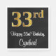 Ce design élégant, luxueux et sophistiqué de serviette en papier sur le thème de l'anniversaire comprend un grand numéro ordinal "33ème" avec un motif dégradé imitation/faux d'inspiration or, en plus du message de voeux d'anniversaire "Happy 33ème anniversaire", et un nom personnalisé dans une police de style script. Il dispose également d'une arrière - plan de couleur noire. Des serviettes en papier sur le thème de l’anniversaire comme celle-ci pourraient être une façon amusante de célébrer le 33e anniversaire de quelqu’un. [~Z0000516]
