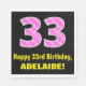 Ce design joyeux et amusant de serviette en papier à thème d'anniversaire comprend un grand numéro "33" avec un motif rayé contenant des formes cardiaques coloré rose clair et rose foncé. Il comporte également le message de voeux d'anniversaire "Joyeux 33e anniversaire", et un nom personnalisable. Des serviettes en papier comme celle-ci peuvent être amusantes à utiliser lors de la fête du trente-troisième anniversaire de quelqu’un. Cela pourrait aussi être un choix amusant pour quelqu'un qui a un anniversaire qui tombe le jour de la Saint-Valentin (14 février), en raison de ses symboles et couleurs de coeur aimés. [~Z0000436]