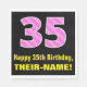 Cette conception joyeuse et amusante de serviette en papier à thème d'anniversaire dispose d'un grand nombre "35" avec un motif rayé contenant des formes coeur coloré rose clair et rose foncé. Il comporte également le message de voeux d'anniversaire "Joyeux 35e anniversaire", et un nom personnalisé. Des serviettes en papier comme celle-ci peuvent être amusantes à utiliser à la fête du 35e anniversaire de quelqu’un ou à la fête. Cela pourrait aussi être un choix amusant pour quelqu'un dont l'anniversaire tombe le jour de la Saint-Valentin (14 février), en raison de ses symboles et couleurs de coeur affectueux. [~Z0000436]
