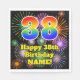 Cette conception amusante et joyeuse de serviette en papier sur le thème de l'anniversaire comporte un grand nombre de "38" avec un motif coloré de gradient de spectre arc-en-ciel inspiré, avec le message "Happy 38th Birthday," et un nom modifiable. L'arrière - plan présente un motif coloré, inspiré par des feux d'artifice, qui éclate en couleurs. Des serviettes en papier comme celle-ci peuvent être utilisées à une fête pour quelqu'un qui fête son trente-huitième anniversaire. [~Z0000574]