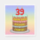 Cette serviette en papier d'anniversaire joyeuse et amusante présente une représentation de dessin animé d'un gâteau d'anniversaire à trois niveaux avec des bougies en forme de chiffre sur le dessus montrant l'âge "39", avec le message "HAPPY 39TH BIRTHDAY," et un nom de destinataire personnalisé. L'arrière - plan a un motif multicolore pastel en arc-en-ciel inspiré du spectre dégradé. Des serviettes en papier sur le thème de l’anniversaire, comme celles-ci, pourraient être utilisées à une fête pour célébrer le 39e anniversaire de quelqu’un. [~Z0000623]