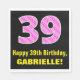 Cette conception joyeuse et amusante de serviette en papier à thème d'anniversaire dispose d'un grand nombre "39" avec un motif rayé contenant des formes cardiaques coloré rose clair et rose foncé. Il comporte également le message de voeux d'anniversaire "Joyeux 39e anniversaire", et un nom personnalisé. Des serviettes en papier comme celle-ci pourraient être agréables à avoir lors d’une fête organisée pour célébrer le trente-neuvième anniversaire de quelqu’un. Cela pourrait aussi être un choix amusant pour quelqu'un qui a un anniversaire qui tombe le jour de la Saint-Valentin (14 février), en raison de ses symboles et couleurs de coeur aimés. [~Z0000436]