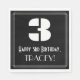 Cette conception de serviette en papier inspirée de l'aspect vintage des années 1920-1930 présente un grand look art déco inspiré du numéro "3", le message "Happy 3rd Birthday", un nom personnalisable et un motif de bordure composé de lignes fines. Des serviettes en papier personnalisées et amusantes comme celle-ci pourraient être utilisées lors d’une célébration d’anniversaire en l’honneur du troisième anniversaire de quelqu’un. [~Z0000494]