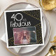 40 et Fabulous Black Gold Parties scintillant Photo 40th Birthday Napkins. Design moderne avec typographie branchée et taches de parties scintillant en faux or. Faites vos propres serviettes en papier pour la fête du 40e anniversaire pour elle.