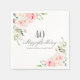 Une belle et féminine serviette de cocktail personnalisée pour célébrer un anniversaire marquant dans un style élégant. Des pivoines roses et bleues créent un cadre floral élégant.