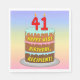 Cette serviette en papier à thème d'anniversaire joyeuse et optimisée présente une représentation de type dessin animé d'un gâteau d'anniversaire à trois niveaux avec des bougies en forme de chiffres sur le dessus montrant le numéro "41", avec le message "HAPPY 41ST BIRTHDAY", et un nom de destinataire modifiable. L'arrière - plan a un motif multicolore pastel arc-en-ciel inspiré du spectre dégradé. Des serviettes en papier comme celles-ci pourraient être utilisées lors d’une fête d’anniversaire organisée pour célébrer le quarante et unième anniversaire de quelqu’un. [~Z0000623]
