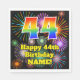 Cette conception amusante et joyeuse de serviette en papier à thème d'anniversaire dispose d'un grand nombre de "44" ayant un coloré dégradé de spectre arc-en-ciel inspiré motif. Il comporte également le message "Joyeux 44e anniversaire", et un nom personnalisé. L'arrière - plan présente un motif coloré inspiré par l'apparition d'un feu d'artifice festif éclatant. Des serviettes en papier colorées comme celle-ci peuvent être amusantes à utiliser lors d'une fête d'anniversaire organisée pour quelqu'un qui célèbre son 44e anniversaire. [~Z0000574]