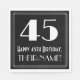 Cette serviette en papier d'anniversaire inspirée et vintage d'apparence des années 20 présente un grand look art déco inspiré du numéro "45", le message "Happy 45th Birthday", un nom personnalisable, et un motif de bordure composé de lignes fines. Des serviettes en papier customisées et amusantes comme celle-ci pourraient être utilisées lors d’une célébration d’anniversaire en l’honneur du quarante-cinquième anniversaire de quelqu’un. [~Z0000461]