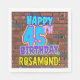 Cette conception amusante de serviettes en papier sur le thème d'un anniversaire comporte le message « JOYEUX 45e ANNIVERSAIRE », avec une apparence vibrante, colorée et inspirée de l'art de rue urbain et du graffiti, en plus du nom personnalisé du destinataire. Le fond présente un motif inspiré d'un mur de briques. Des serviettes en papier amusantes, vibrantes et personnalisées comme celles-ci pourraient être amusantes à utiliser lors d'une fête d'anniversaire organisée pour quelqu'un qui célèbre son 45e anniversaire. [~Z0000534]