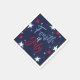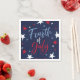 4 juillet serviettes Red White Blue Fireworks Party présentent une calligraphie audacieuse et des étoiles rouges blanches et bleues sur un arrière - plan de marine.