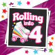 Ce design de fête de patinage est parfait pour une fête de patinage à rouleaux ou un thème d'anniversaire pour une fille de 4 ans. Si la fille d'anniversaire aime le roller skate, elle ADORE ce skate party design! Caractéristiques style rétro 'Rolling in 4' anniversaire citation avec roller cool graphique avec arc-en-ciel & étoiles qui est amusant et unique. Fun roller skate design pour le 4ème anniversaire d'une fille!
