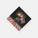 Sparklers in a glass jar illuminate the scene alongside a small American flag, set against a red and white checkered tablecloth