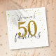 Élégantes serviettes pour fête d'anniversaire 50 ans avec étoiles dorées et confettis. Vous pouvez les personnaliser avec le nom de la dame spéciale, ce qui en fait un bel ajout à la célébration de la fête. Conçu par Thisisnotme©
