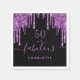 Un mouchoir pour les 50 ans (ou tout âge) tendance et glamour. Un fond noir classique orné de gouttes de paillettes violettes foncées, aspect peinture qui coule. Avec le texte : 50 et fabuleux. Personnalisez et ajoutez un nom. Texte de couleur violet clair. Le mot Fabuleux est écrit avec un style de lettrage à main moderne avec des fioritures.