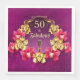 Élégante serviettes en papier pour la fête d'anniversaire de la femme de cinquante ans fabuleux. Belles orchidées dorées et roses avec des tasses à champagne.