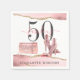 50 et fabuleux serviettes de fête d'anniversaire, avec des chaussures à talons hauts sur une agate de parties scintillant en or rose contre noir. Design et glamour.